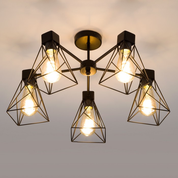 Decorate your ceiling space and create high -quality lighting on an area of 23 m square meters. A stylish Loft style chandelier will help. The strict appearance and constructive simplicity of forms will be added to the modern interior of the industrial style, and a harmonious color tandem of black and warm glow lamps will emphasize it.