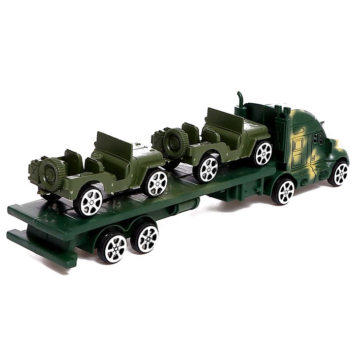 Inertial truck "Military Auto -Vorot" will allow the child to participate in exciting adventures. The baby will play with him in the transportation of military equipment and the implementation of others important missions.