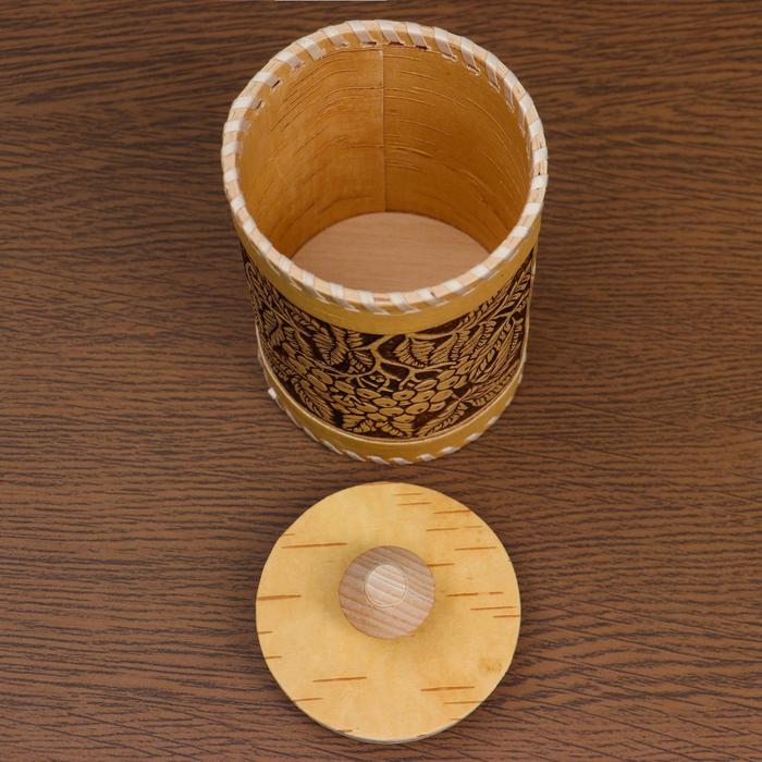 The product is made of environmentally friendly raw materials, which is ideal for storage of products. Beresta is a natural antiseptic and perfectly absorbs moisture. Products in such utensils retain their freshness and taste for longer, insects do not start in it and bacteria do not multiply.
