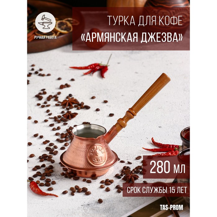 Armenian jesas (Turks) are famous for their durability, the average service life with proper use is 15 years. Before the first use, wash the Turk with warm water and detergent with a detergent with a detergent ; It is not recommended to use abrasive powders and metal brushes for washing; It is not recommended to wash in the dishwasher. The Turks are designed only for the preparation of coffee or boiling water.