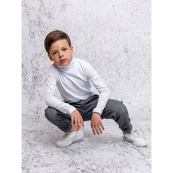 Turtleneck (jumper) for a boy with long sleeves in a white color is made of fabric with a sandwiches of a sag of an increased grammage. An important basic thing in any wardrobe: for school and everyday socks. Stylish, cozy, at any time of the year.
