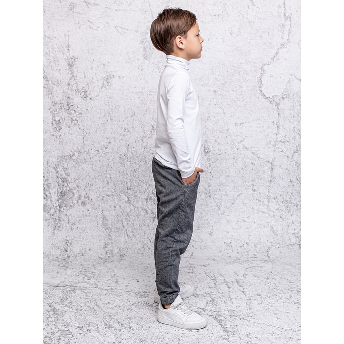 Turtleneck (jumper) for a boy with long sleeves in a white color is made of fabric with a sandwiches of a sag of an increased grammage. An important basic thing in any wardrobe: for school and everyday socks. Stylish, cozy, at any time of the year.