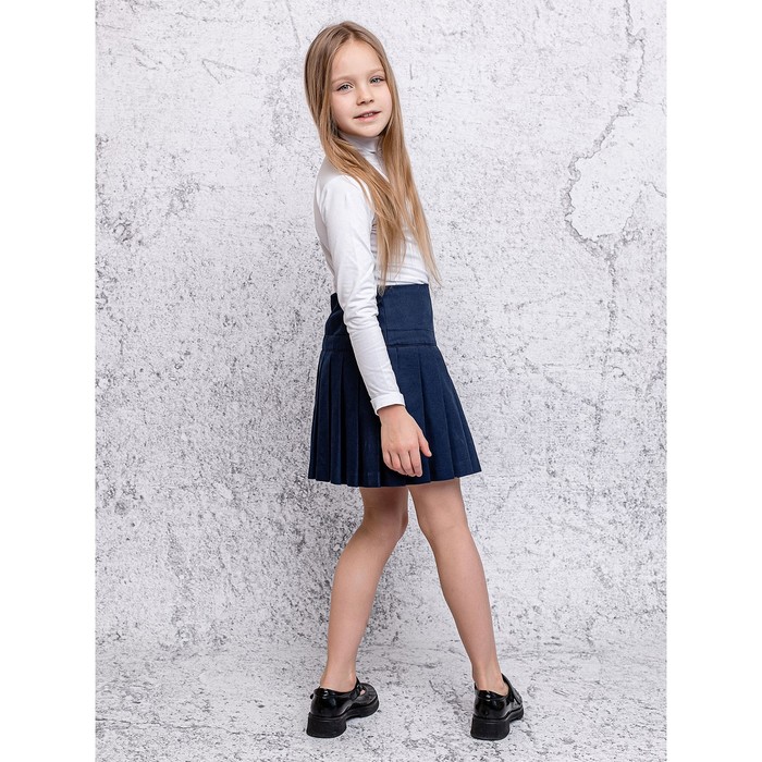 Turtleneck (jumper) for a girl with a long sleeve in a white color is made of fabric with a sandwich singing of an increased grammar. Elastic fabric. Suitable for socks at any time in a year at school.