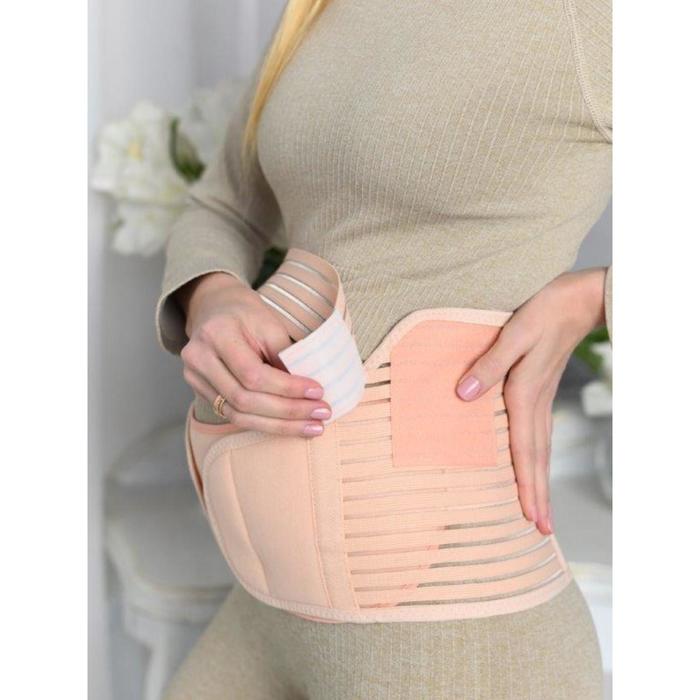 A belt for pregnant women (universal) consists of three parts. During pregnancy, the lower front part of the belt is put on the wide side under the stomach, fixed on the side of Velcro-microplast. The widest part of the belt should be placed in the lower back and fix it to the lower front on the sides. Fix a narrow short part on top, above the stomach. Using lateral Velcro, it allows you to reliably fix the structure, as well as adjust the size and planting of the bandage in the shape of the tummy. After childbirth, the product is unfolded and put on a wide part on the stomach and, using a narrow part, the degree of fixation of the belt is regulated.