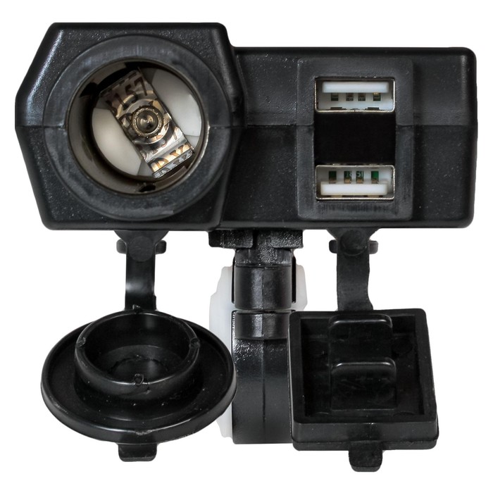 The USB moisture -proof socket for motorcycles is installed on the steering wheel of a motorcycle, scooter, ATV. Connects to the battery, working current 12 volts. Allows you to charge and connect any devices from the USB port and cigarette lighter. The main advantage is the button for turning on and off the outlet. You can not worry that the battery of your iron friend will be discharged. The device is equipped with a USB unit so that moisture does not get into the outlet. The socket is also equipped with a voltmeter, which will allow you to monitor the on -board network.