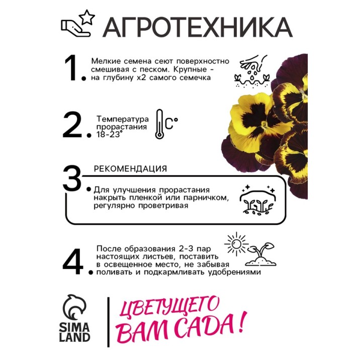 The delightful series of large -flowered hybrid Viola, thanks to the unusual shades, will become the central decoration of the balcony, or any garden space. Blooms abundantly and long from May to September. Brown-red flowers with a yellow eye and bright strokes in the center, with a diameter of 6 cm. The plant is moisture-loving, cold-resistant, grows well in the sun and in partial shade. To obtain plants blooming in the year of sowing, seeds are sown for seedlings in February-March. Seals appear in 5-7 days. In open ground, seedlings are planted in late April and early May at a distance of 20 cm. They are well tolerated in a flowering state. When sowing in open ground in June-July, flowering occurs in the second year. Used for planting on flower beds, in slave, balcony boxes and garden vases.