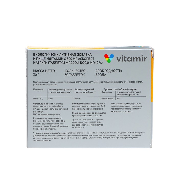 Vitamin C Acorbath Sodium "Vitamir", 30 tablets