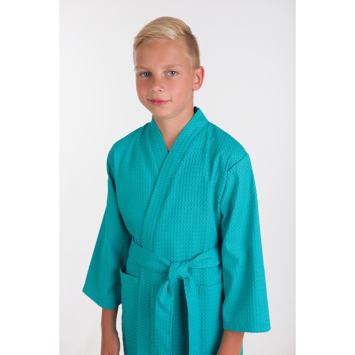 Waffle children's robe "kimono", size 32, emerald color