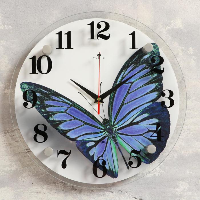 Wall clock, interior: animal world, "butterfly", d-21 cm, silent