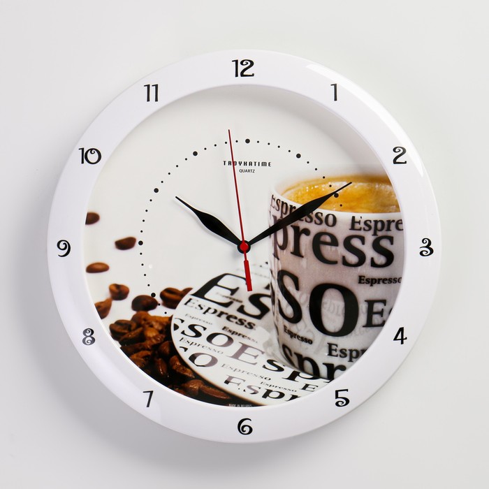 Wall clock, series: kitchen, "coffee", d-29 cm, white rim