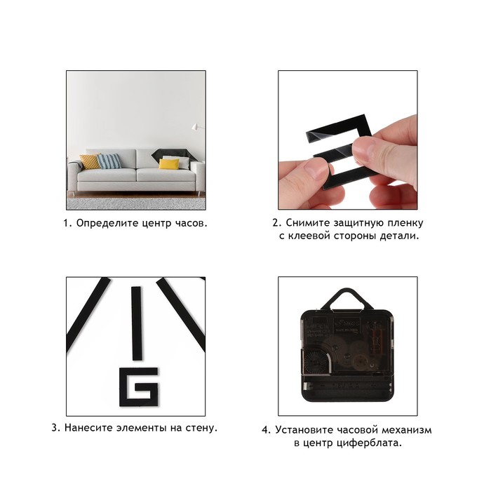 Create a watch in your own style, show ingenuity and creativity. It is not necessary to place the numbers in a circle - give the accessory an unusual shape, change the diameter of the dial, use not all elements. Components are easily glued to the wall and can easily be removed.