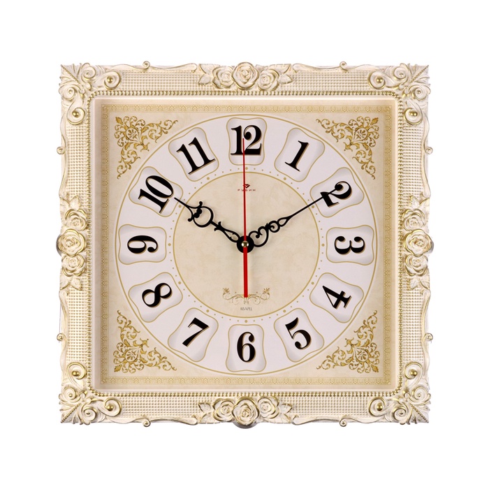 Watch wall, interior "hut", 38 x 38 cm, silent, white gold