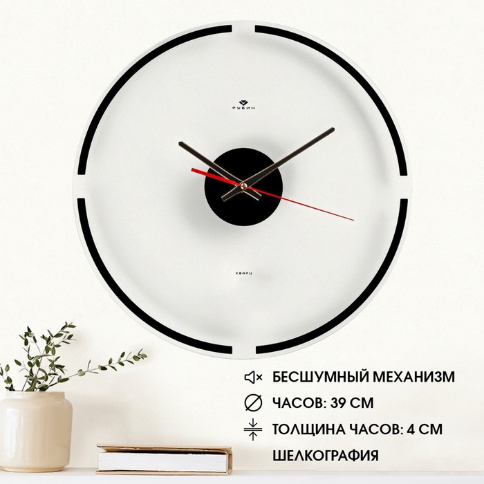 Watch wall, interior "minimalism", D-39 cm, silent
