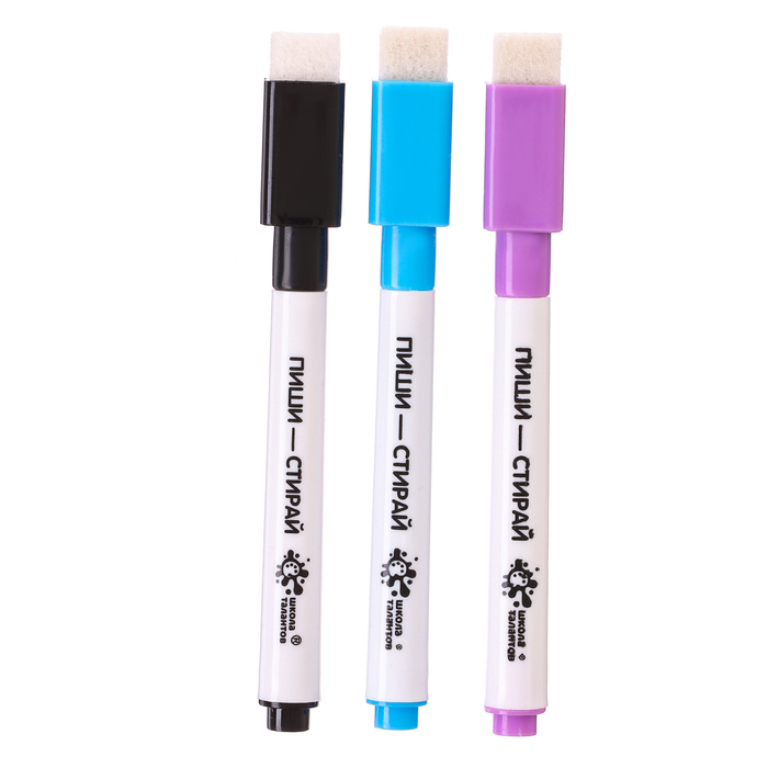 Water -based color markers with magnet and sponge (set 3 pcs)