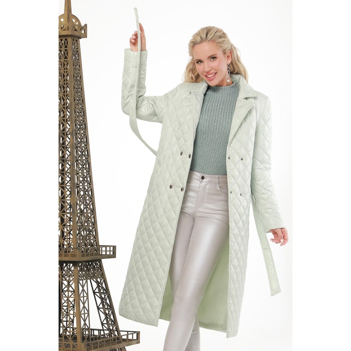 A quilted coat of midi length with a belt is an elegant model for the cool season: