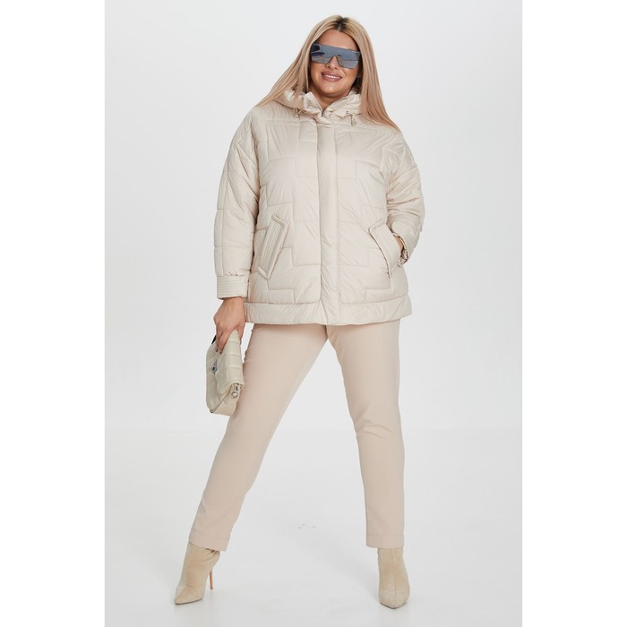 - A jacket of a direct silhouette of a plane plain fabric, on a synthetic winterizer with a figure stitch, length to the hips