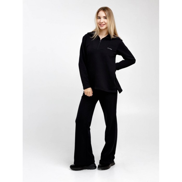 - Sports women's costume made of footer, the kit includes a sweater with a high neck and comfortable trousers, flushed to the bottom