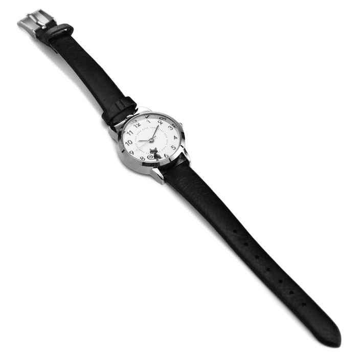 Women's watch "cat", d-2.8 cm, black strap