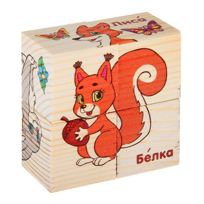 Wooden cubes "forest animals", set of 4 pcs.