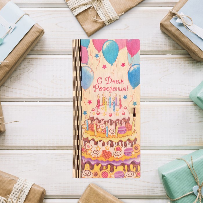 Wooden envelope "Happy Birthday!" cake, 17x8 cm
