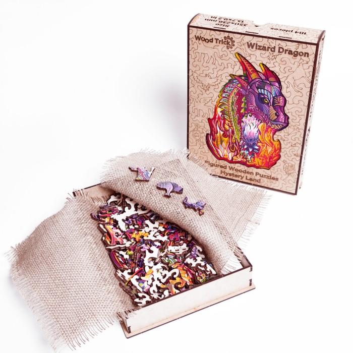 Puzzle “Magic Dragon” is a set of 184 bright details. Due to the special method of cutting, the details are tightly attached to each other, forming a holistic picture that is not broken from a simple touch.