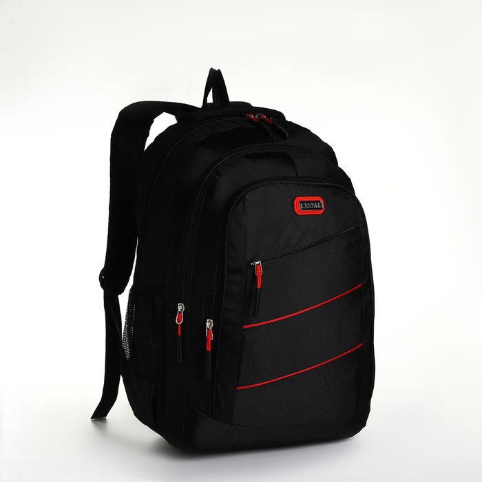 Youth backpack from lightning textiles, 5 pockets, black/red color
