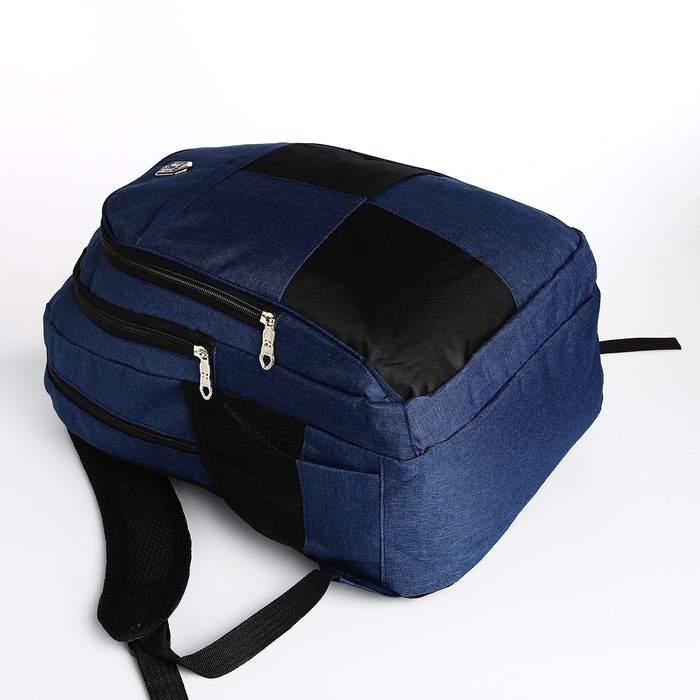Youth backpack from textiles, 2 departments, 4 pockets, blue color