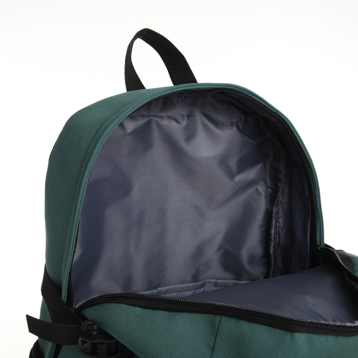 Youth backpack from textiles, 2 pockets, black/green color