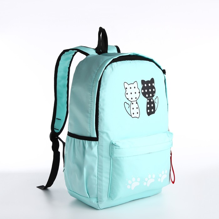 Youth backpack from textiles, 3 pockets, wallet, mint color