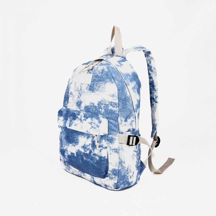 Youth backpack from textiles on lightning, 3 pockets, blue color
