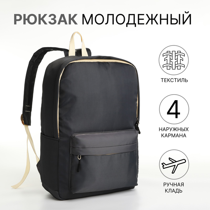 Youth backpack from textiles with lightning, 2 pockets, black color