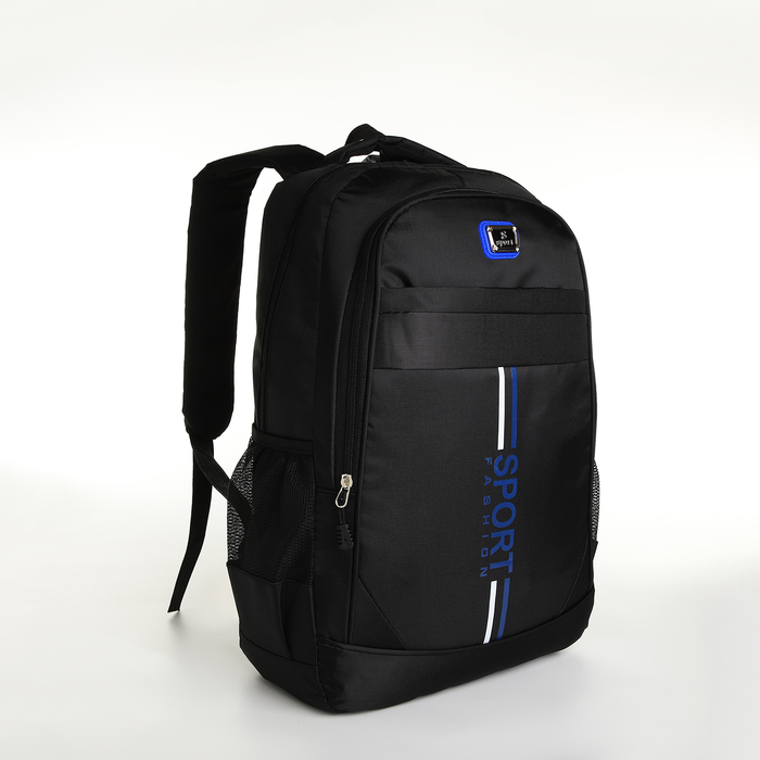 Youth backpack on a zipper, 4 pockets, black/blue color